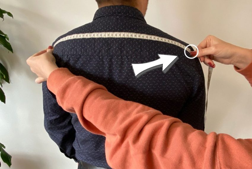 Pour finir avec la veste, mesurez d’une extrémité d’épaule à l’autre, en passant par-dessus les omoplates. Ce chiffre garantit une carrure ajustée, ni trop large ni trop étroite.