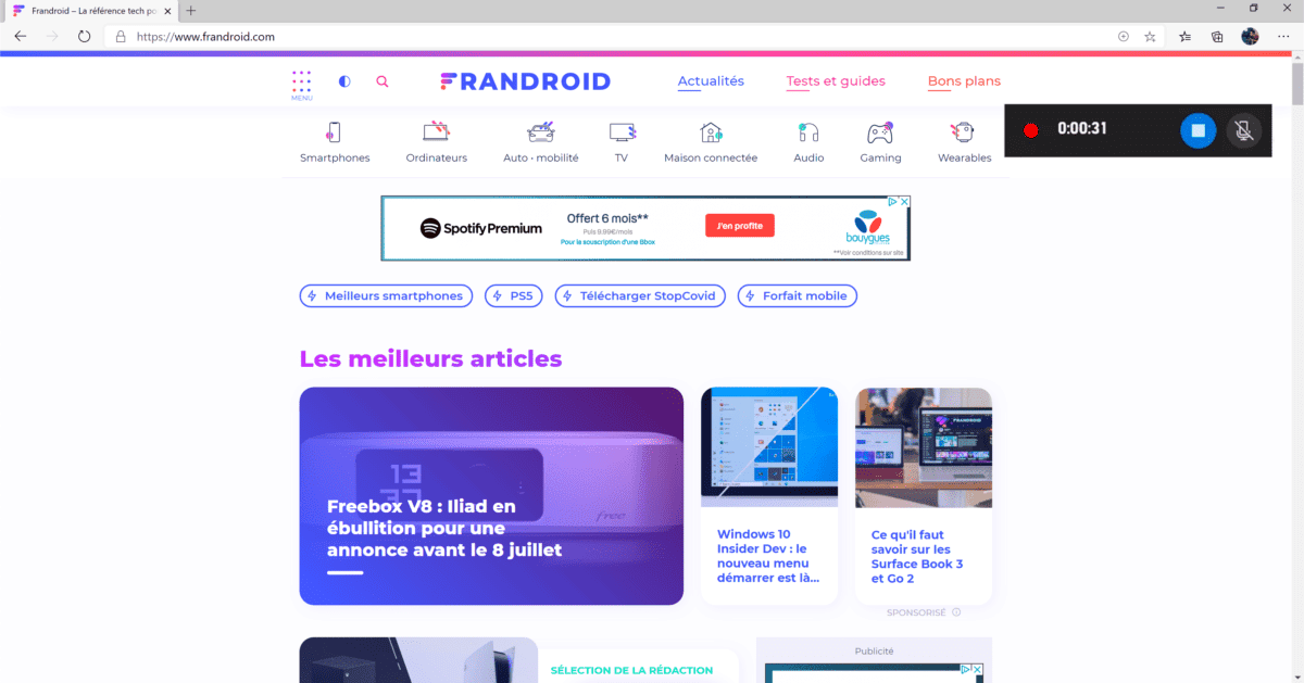 Une petite fenêtre s’affiche dans l’angle supérieur droit de l’écran. Elle vous permet à tout moment d’arrêter la capture ou de désactiver le micro si besoin.