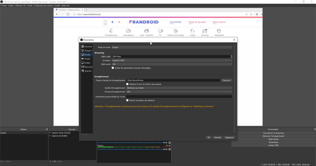 Pour démarrer, téléchargez OBS Studio depuis son site officiel, installez-le, puis ouvrez les paramètres. Dans l’onglet Sortie, vous pouvez régler la qualité et le format d’enregistrement. Un conseil : adaptez ces réglages à la puissance de votre PC, car viser trop haut risque de le faire ralentir.