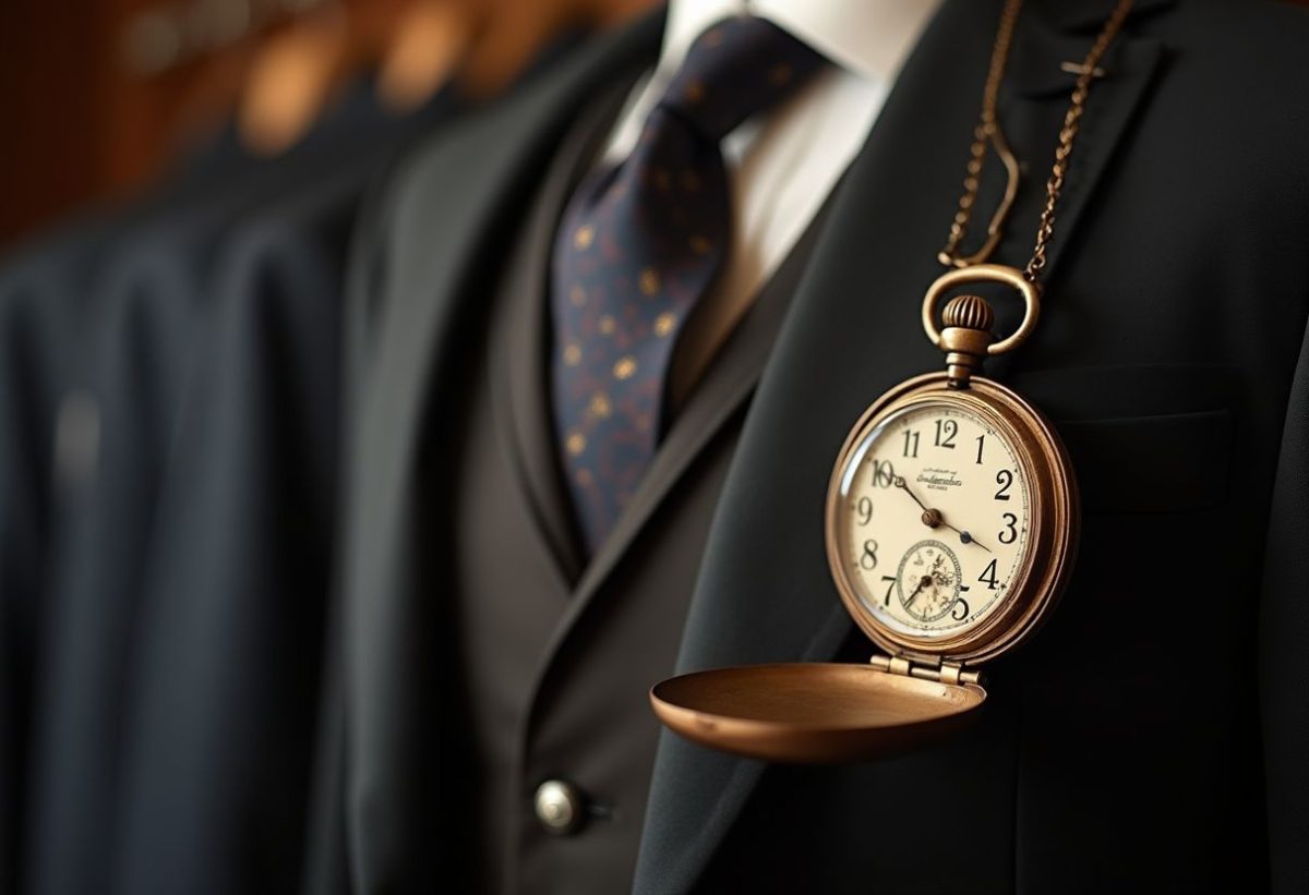 Les montres à gousset s’intègrent parfaitement dans les tenues formelles, complétant un costume élégant et s’associant avec des accessoires rétro comme les bretelles et les cravates. L’utilisation d’accessoires complémentaires, tels que des broches, enrichit l’apparence globale, créant une cohérence stylistique.