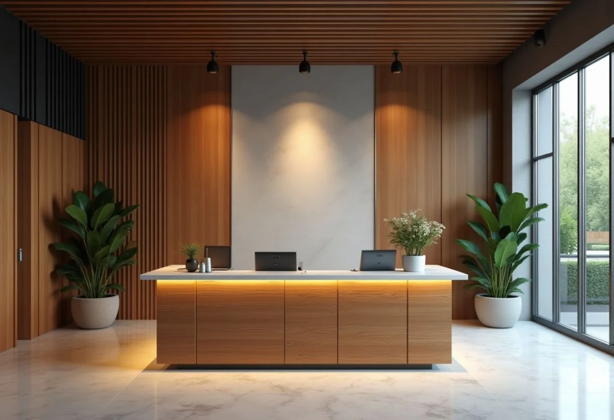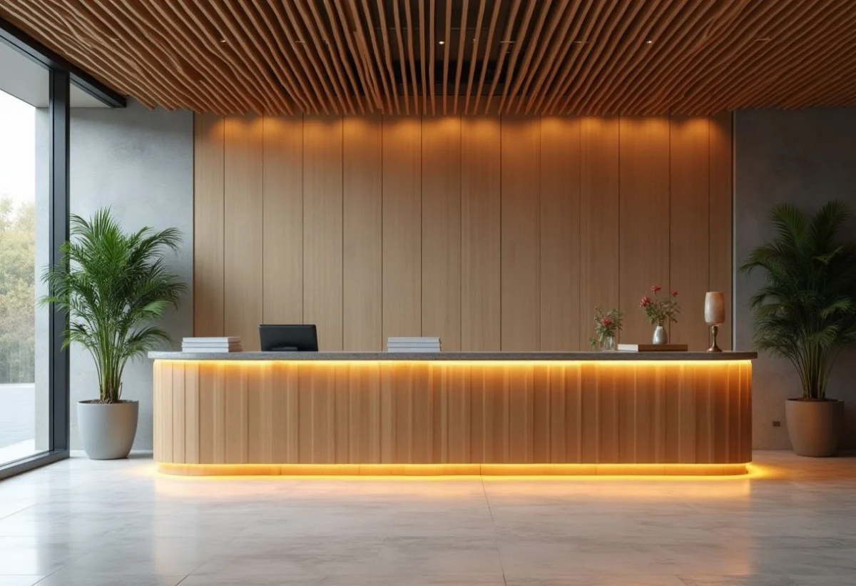 Outre le bois et le verre, d’autres matériaux méritent d’être pris en compte pour la création d’un espace accueil professionnel. Le stratifié haute pression (HPL) est apprécié pour sa robustesse et sa facilité d’entretien. Le métal, quant à lui, apporte une touche industrielle et contemporaine, souvent utilisé en complément des autres matériaux pour garantir une durabilité optimale.